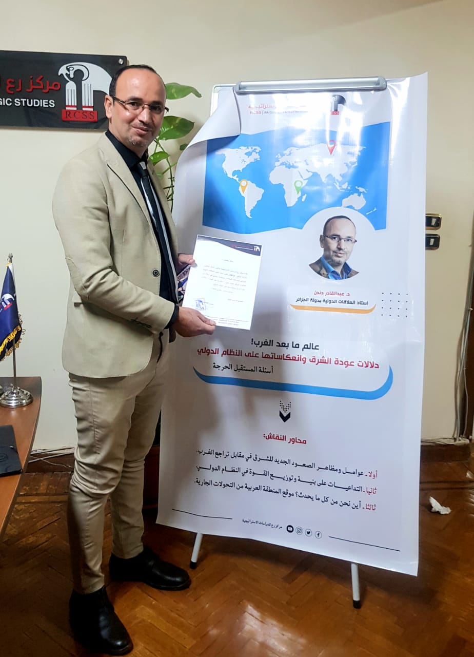 بدأ الدكتور عبد القادر دندن أستاذ العلوم السياسية الجزائري، كلامه في ندوة عُقدت بمركز رع للدراسات الاستراتيجية، تحت عنوان ” عالم ما بعد الغرب.. دلالات عودة الشرق وانعكاساتها على النظام الدولي”- قائلًا إن الفترة التاريخية الحالية، ستكون شاهدة على تبدل في ميزان القوى العالمي؛ لأن الهيمنة الأحادية الأمريكية لم تستمر على العالم. في مقابل أن الساحة الدولية تشهد من صعود لعدد من القوى من بينها الصين، التي تمتلك ما يؤهلها بتشكيل تصورها الخاص على النظام الدولي، فيما يمكنها من منافسة الولايات المتحدة الأمريكية في مناطق نفوذها ووزنها في المؤسسات الدولية كمجلس الأمن وصندوق النقد الدولي وغيرها.
