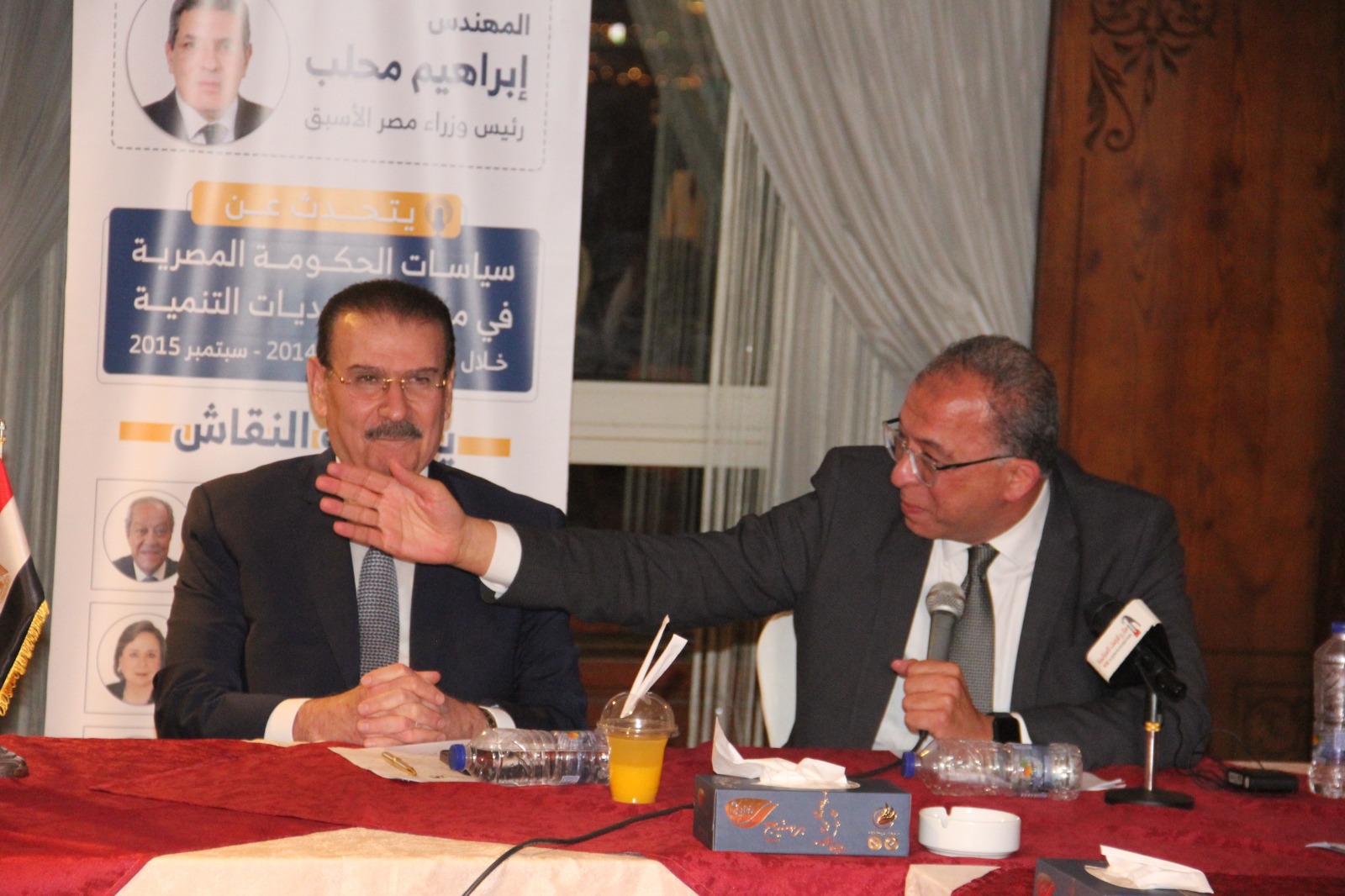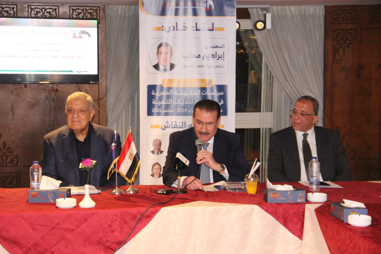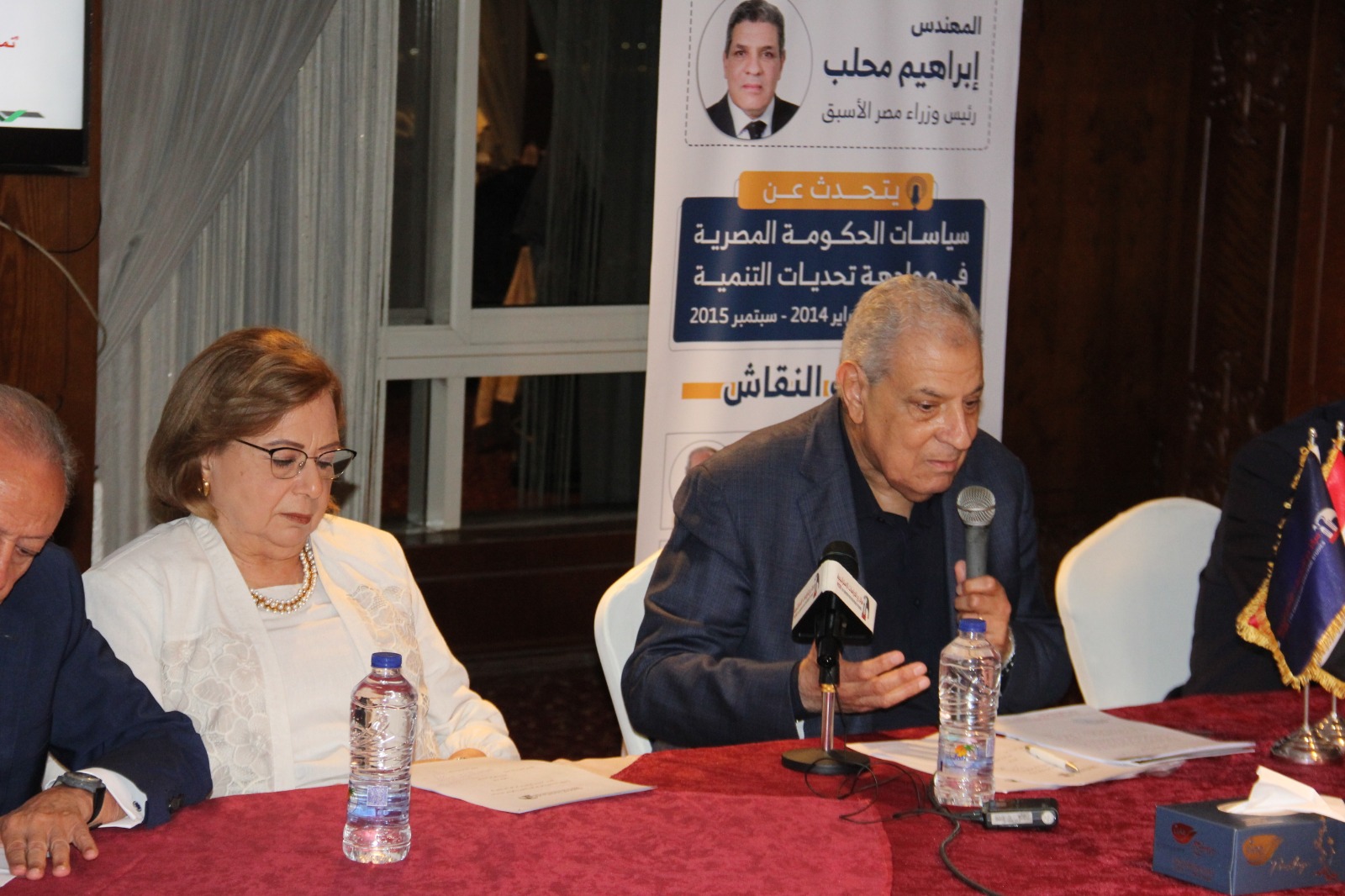 وفي كلمته، تحدث المهندس “إبراهيم محلب” عن حجم التحديات التي واجهت حكومته عقب ثورة 30 يونيو، مشيرًا إلى أنه بناء على تعليمات القيادة السياسية عمل الفريق الوزاري بمنهجية “الميدان أولًا”، وأن الوزراء نزلوا الشارع بأنفسهم لمتابعة المشروعات وتفقد الأوضاع عن قرب، موضحًا أن الهدف الذي ركزت عليه الحكومة آنذاك كان إعادة بناء أركان الدولة، بعد أن استهدفت الجماعات الإرهابية انسلاخ الشخصية المصرية عن هويتها وعملت على ذلك مستغلة ظروف عدم الاستقرار.