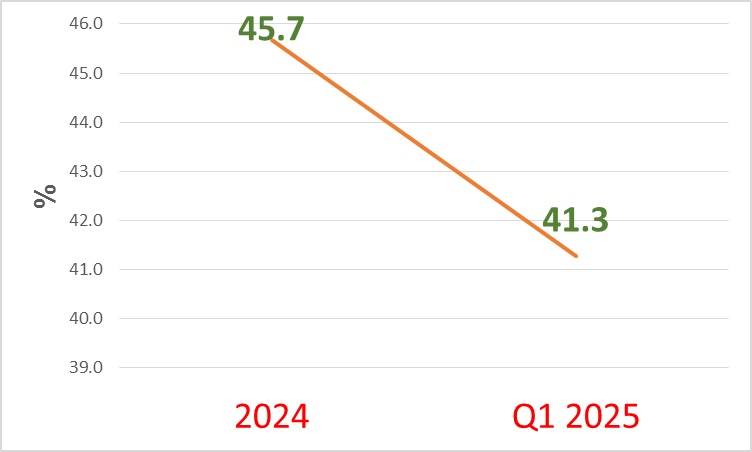 (*) ارتفاع حجم القروض والودائع: تبين من أحدث بيانات صادرة عن البنك الزراعي المصري أن البنك حقق طفرة كبيرة في كلاً من محفظة الودائع ومحفظة القروض، فكما يوضح الشكل (1) ارتفعت محفظة الودائع من 194 مليار جنيه في نهاية عام 2024 إلى 218 مليار جنيه في الربع الأول من عام 2025، أي ارتفعت بنسبة 12.4%.