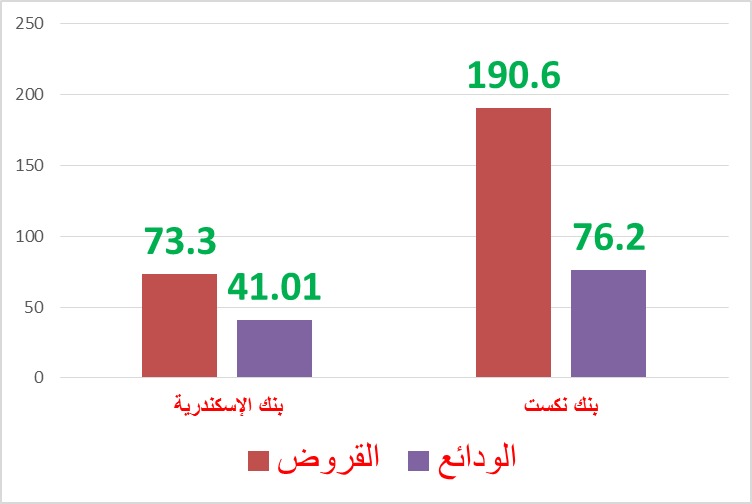 الشكل (2) يوضح حجم قروض وودائع بنكي نكست والإسكندرية في النصف الأول من 2025