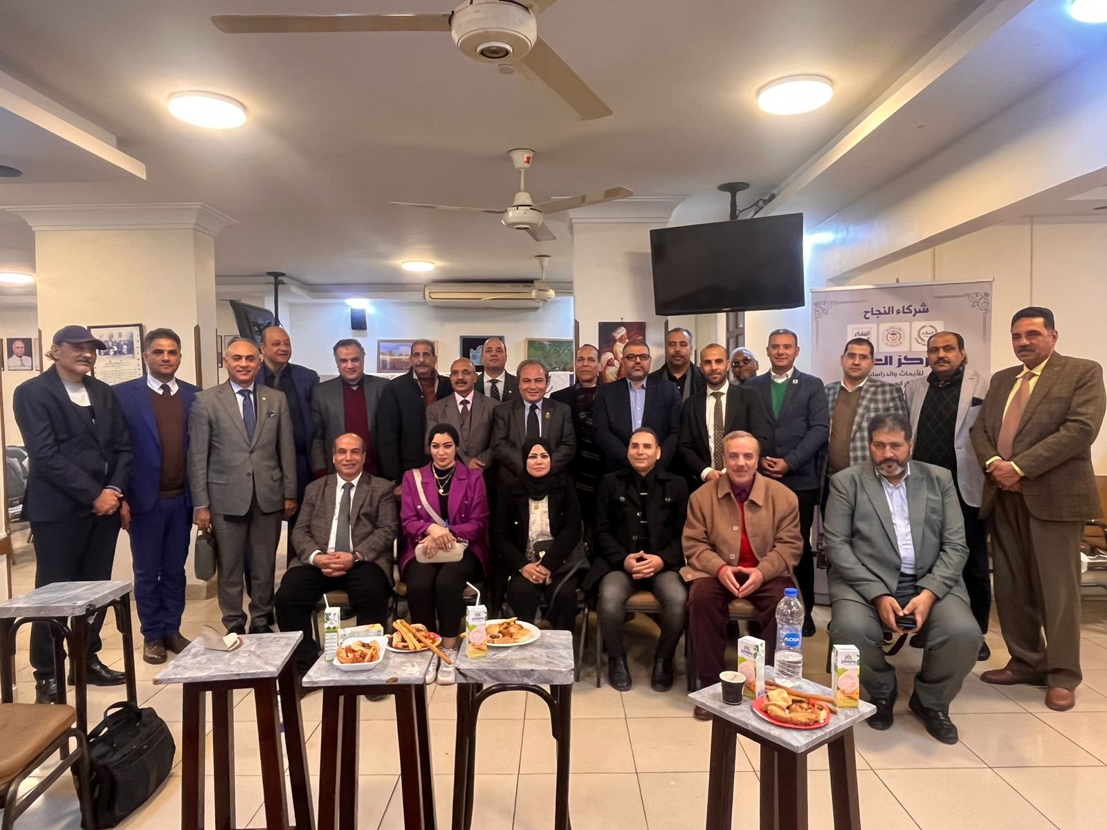 مقرر الندوة الكاتب الصحفي محمد فتحي الشريف، رئيس مركز العرب للأبحاث والدراسات، والدكتور أبو الفضل الإسنّاوي، رئيس مركز رع للأبحاث والدراسات، والدكتور محمد يحيى غيدة، نائب رئيس مركز العرب للأبحاث والدراسات